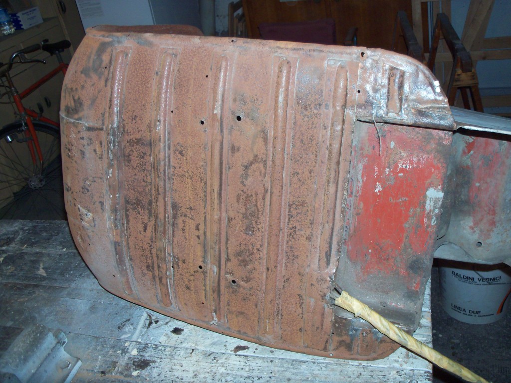 a questo punto si dovrebbe intervenire con le saldature varie (nei prossimi messaggi vi parlero' del ripristino della scocca) ri-primerizzando le zone per non farle arrugginire.