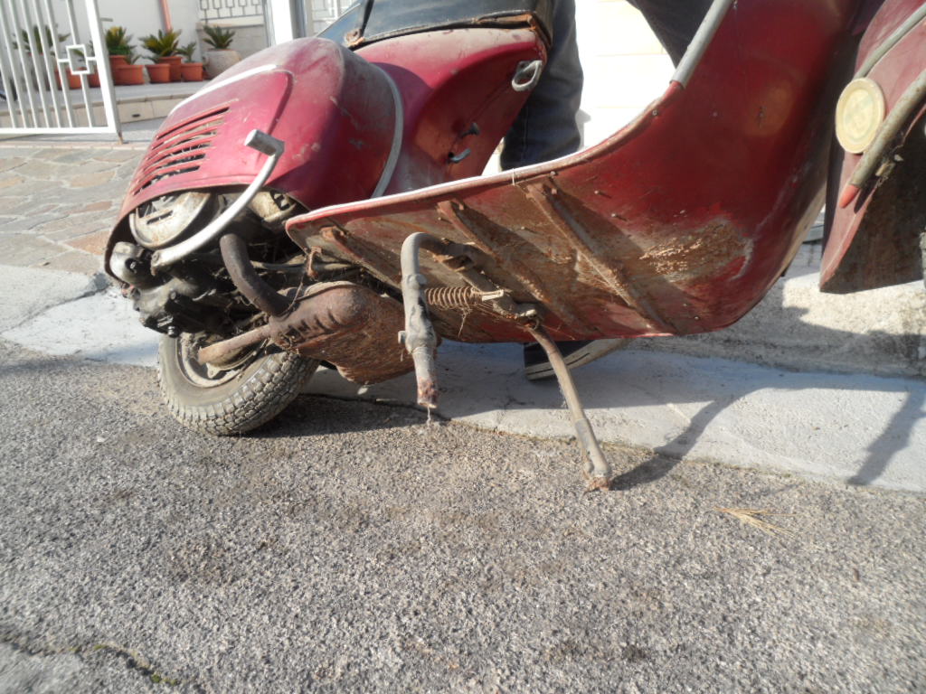 Attenzione!! È il suo rosso giusto?? Perchè dalle foto sembra rosso metallizzato!! Non vorrei mai che sia stata riverniciata . Dagli una bella lavata e fai qualche foto nuova in cui si veda bene il colore ... Perché se è il suo colore originale puoi tentare la via del conservato, se è stata riverniciata in rosso metallizzato ti tocca di restaurate.... |