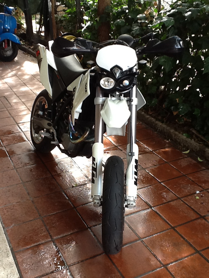 Hskuarna motard o esagerando la Hyper motard della Ducati la 1200.... non è sulla stessa lunghezza d'onda di siimili pure motard, ovvio, è praticamente una moto da strada, con i suoi 270 ed oltre chilometri orari.