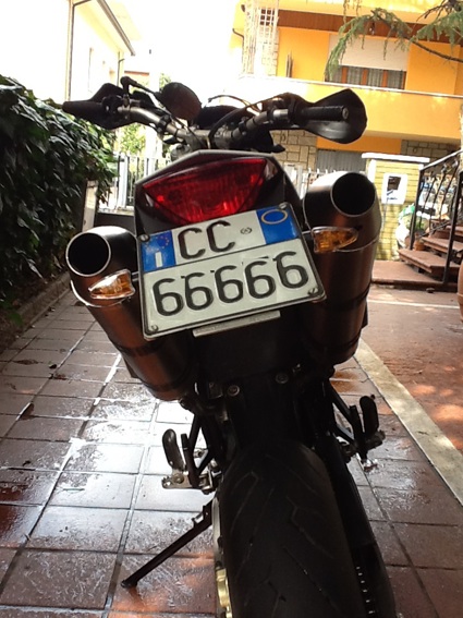 Io ho lo stesso modello ma e' del 2004. In pratica ha un solo scarico ed e' omologata monoposto.