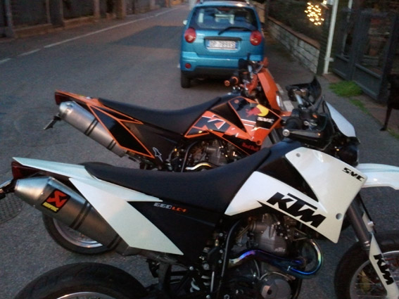 KTM 660 supermotard, avviamento a sola pedalina... Ignorante e taaanto potente! Dalle foto non rende! Ci sono anche due foto in coppia con quella di un mio amico!