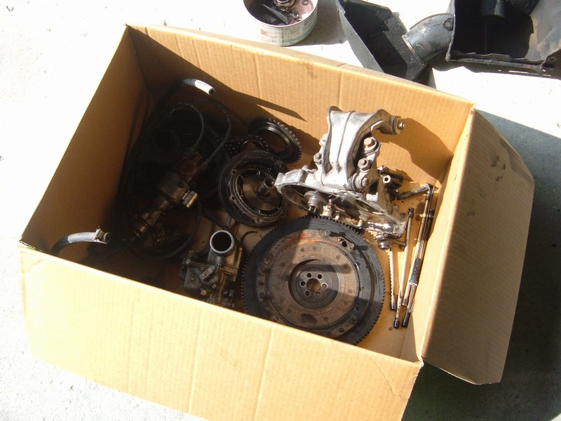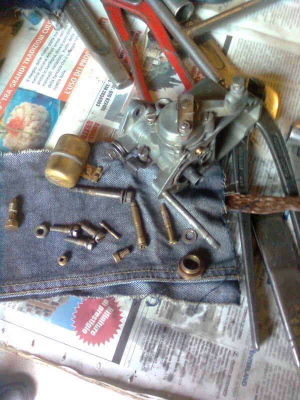 Bronzine di biella, kit guarnizioni, kit distribuzione, valvole e guide valvola, kit guarnizioni carburatore, puntina e condensatore, boccole motorino avviamento, spazzole e boccole dinamo e marmitta. Il blocco era parecchio consumato nella sede dell'albero a camme, così ho portato tutto in rettifica dove mi hanno fatto una boccola, spianato il piano di appoggio della coppa e spianato la testata.
