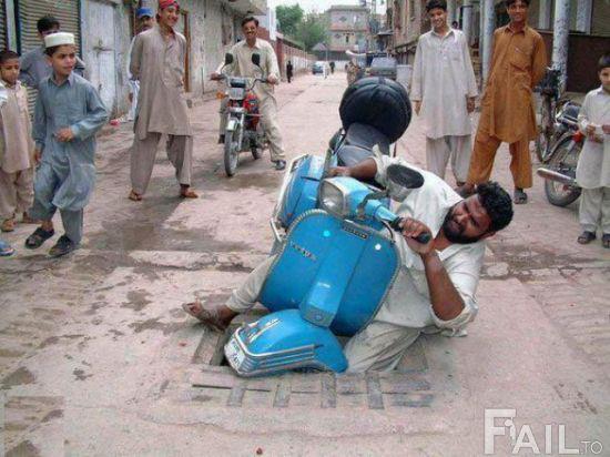 Da notare: 1- gli amici bastardissimi che avevano sistemato il classico tappeto sul tombino aperto