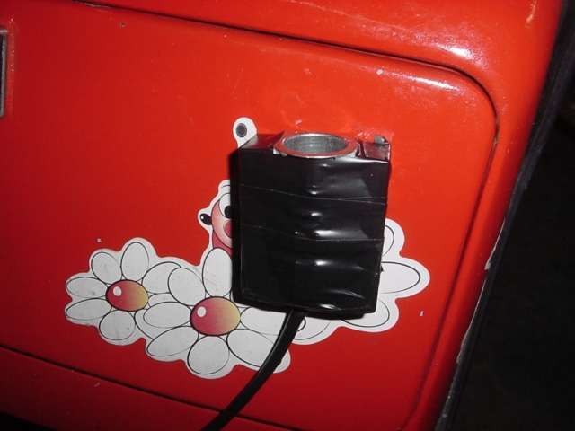 ed ecco la presa-accendino autocostruita, magnetica e staccabile e riponibile, niente fori!!!  e niente fili "pizzicati" ne bauletto