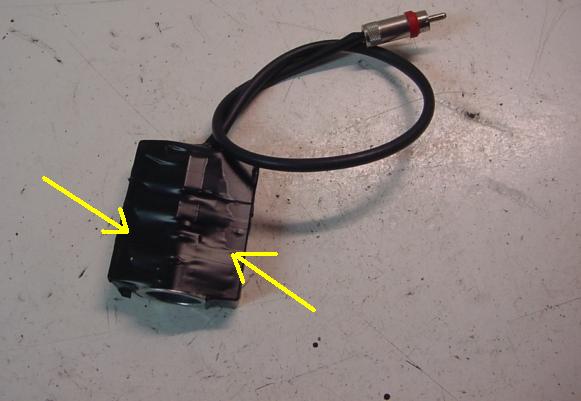 questa è una normale presa accendino per auto; le frecce indicano i due magneti comprabili in ferramenta che si usano per le chiusure magnetiche degli sportelli... costano una fesseria, io li ho incollati sul corpo della presa e poi ho avvolto tutto con l'immancabile nastro isolante nero