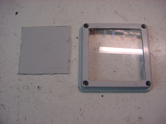 al coperchio della scatola ho ritagliato l'interno e poi vi ho incollato un pezzo di plexiglass; se non trovate il plexiglass(si trova normalmente nei brico ed un pezzo 30X50 costa un euro )potete usare una custodia di CD Immagine: