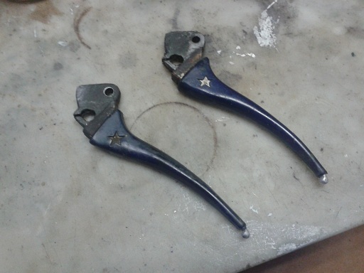 dopo aver verniciato in nero lucido la griglia del clacson, ho iniziato a pulire e lucidare le leve freno/frizione in alluminio