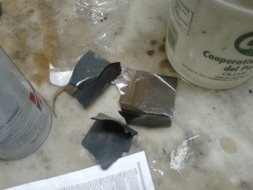 dopo aver portato via i rivestimenti in gomma, ho iniziato con carta abrasiva da 600 asciutta, poi da 800 e 1000 e 1200 bagnata con olio per rendere le leve più lisce possibili. Poi ho messo in un vasetto della pasta abrasiva (vedi foto) diluita con petrolio (deve rimanere densa e non liquida)... spalmato poi su un tampone a spugna che si mette sul trapano e lucidato per circa 4-5 minuti. Rifinirò poi nei prossimi giorni le leve già lucide con polish o sidol con ovatta o feltro su trapano. Cercherò di fare poi foto a specchio