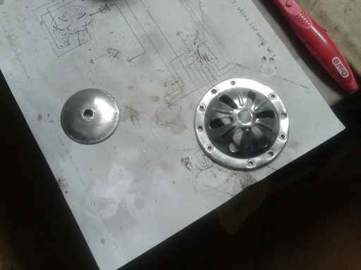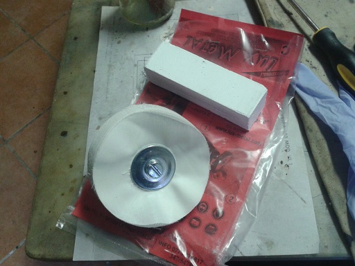 quidi ho usato un spazzola di stracci montata su trapano e sfregata su una saponetta abrasiva per cromature (costa 6 euro compresa la spazzola) e poi ho lucidato con una spazzola di feltro con lucidante per cromature (sempre 5 euro)