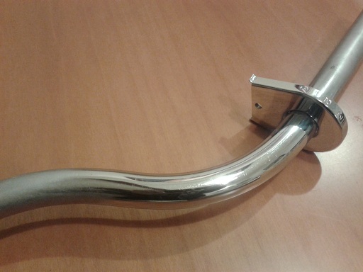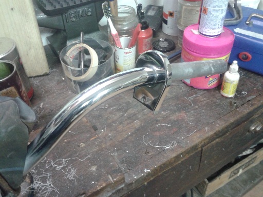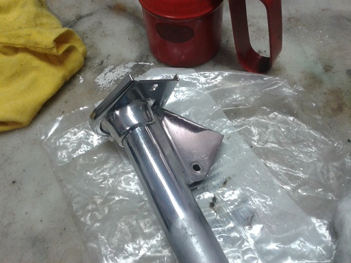 pensavo di doverlo ricromare ma penso che con una lucidatura è tornato quasi nuovo. dopo averlo smontato in 4 pezzi prima lo ho lavato con una mistura di benzina e nafta spazzolandolo con uno spazzolino da denti già usato...poi l'ho lavato con sgrassatore e detersivo per piatti con spugnetta per piatti