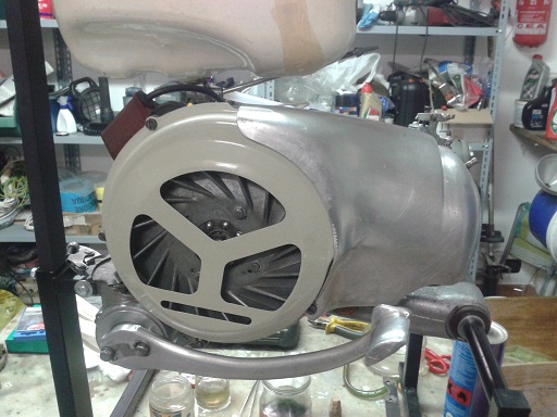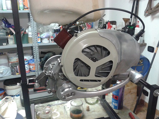 ieri dopo la messa a punto della px (che uso per lavoro e che quindi ha la priorità) ho proseguito il montaggio del motore sul cavalletto montato il volano, strette le puntine, messa la ventola con i 4 bulloncini ribruniti (per ora grower poi se tutto ok metterò le rondelle fermabullone),il copriventola verniciato con le viti ribrunite e la calotta copri testa con bullone e rondella ribruniti.