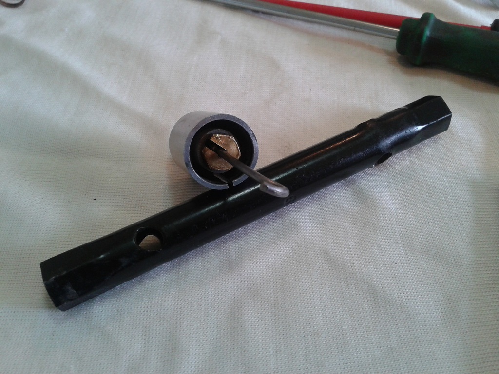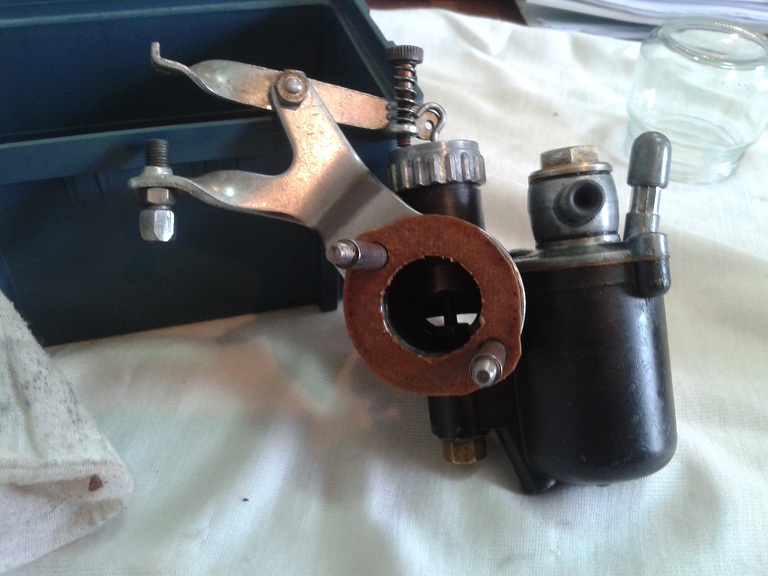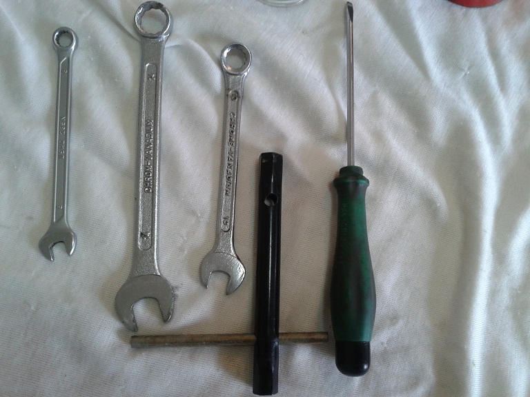 visto che ho rimesso a posto l'impianto elettrico provo a rivedere anche il carburatore TA 18D... servono chiave a forchetta da 8 da 10 da 14, chiave a tubo da 9 e cacciavitino (misura 1 o 2) a taglio e si procede come segue: