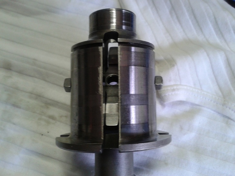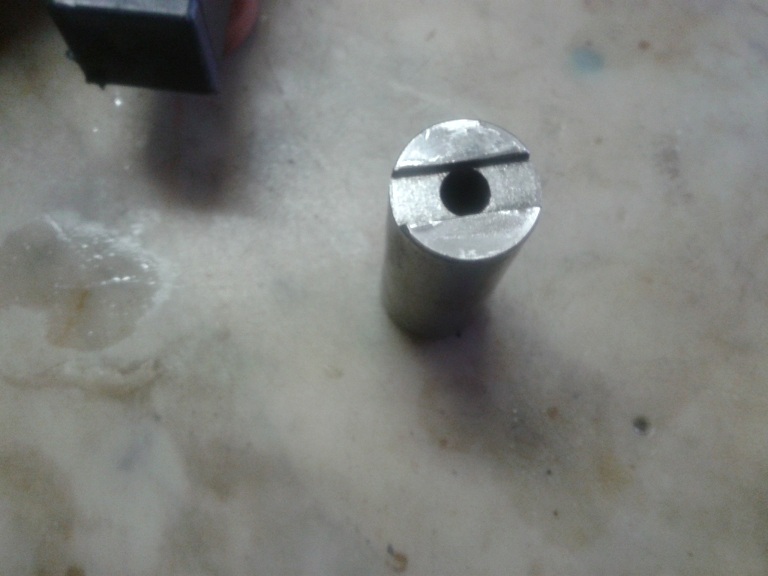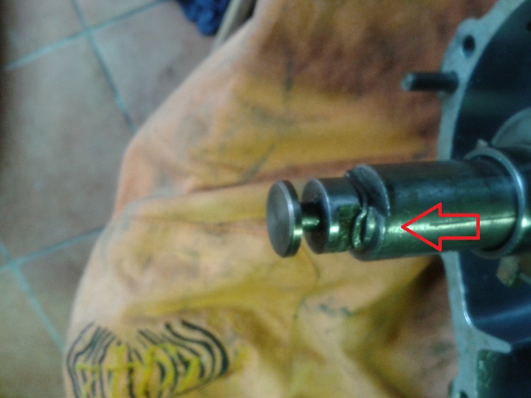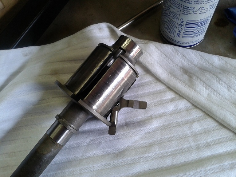 poi ho infilato il manicotto di guida stelo nel foro dell'albero facendo combaciare le 2 lineette della crocera con l'intaglio del manicotto (si vede nella foro) a incastro