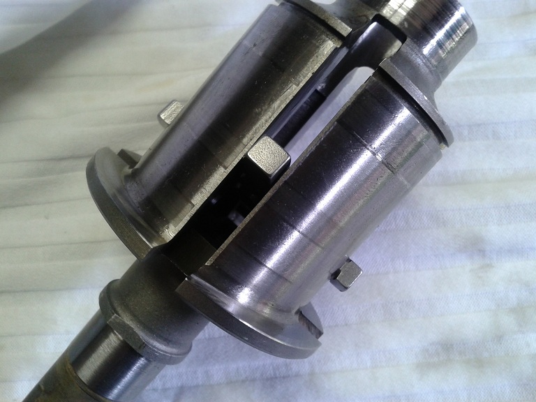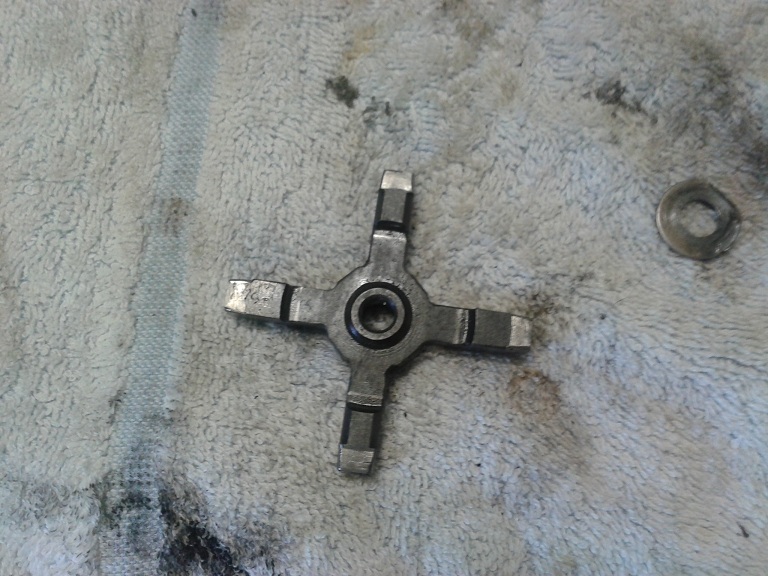 Ho poi inserito la crocera in una delle feritoie dell'albero ingranaggi e ruotata in modo da mettere la parte che si vede nella foto precedente va verso il basso (e la parte fresata al centro [2 linee] verso l'alto)