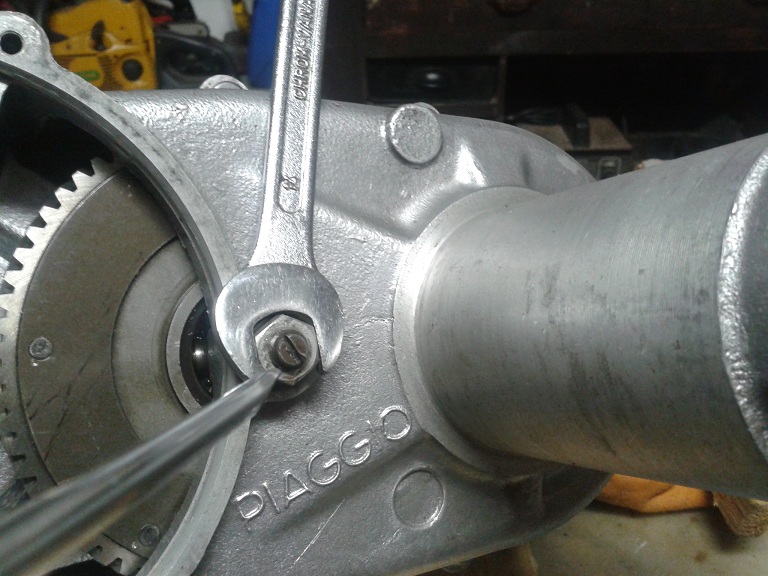 così la molla è già precaricata e quindi montando la messa in moto la fresatura dove va il bullone di blocco sta subito in posizione