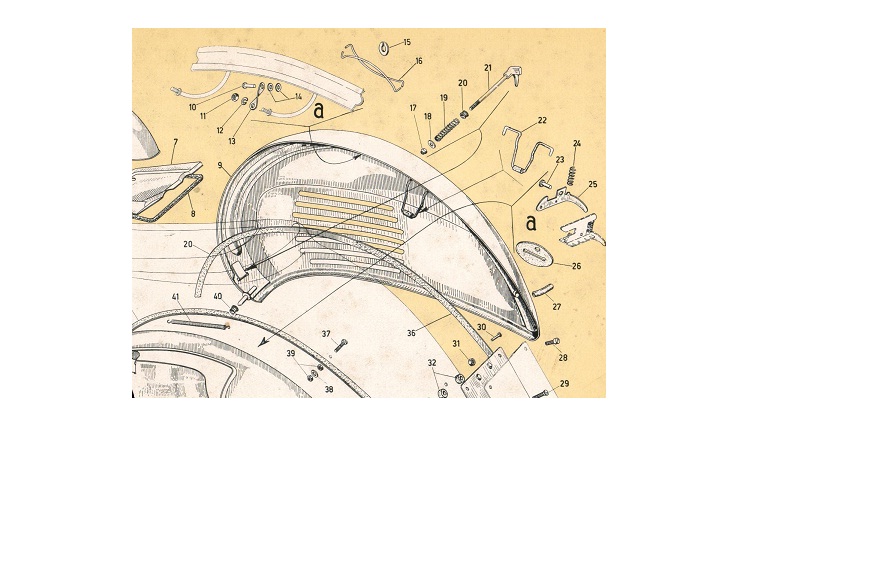 per fabio mi sono espresso male la cerniera posteriore (n 13 del disegno e fotografata)va imbullonata al tirante posteriore del cofano. Chiaramente un'altra cerniera va abbinata al tirante anteriore (indicato con la freccia da te)