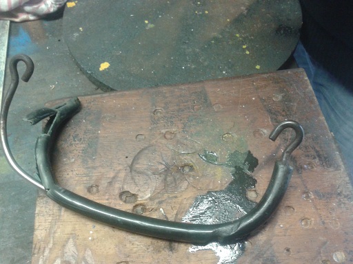 oggi ho iniziato a fosfatare la molla dell'ammortizzatore posteriore... non era necessario sabbiarla...