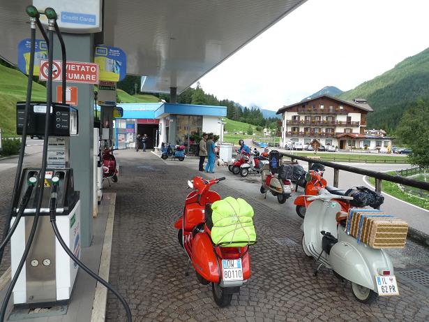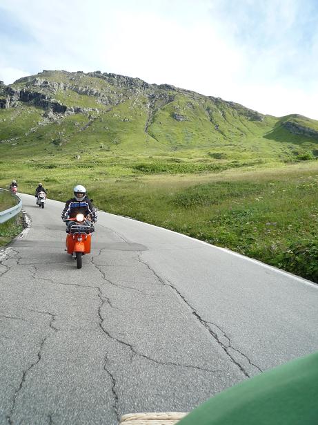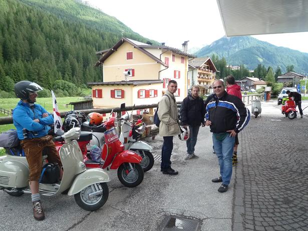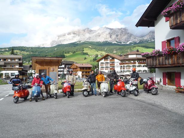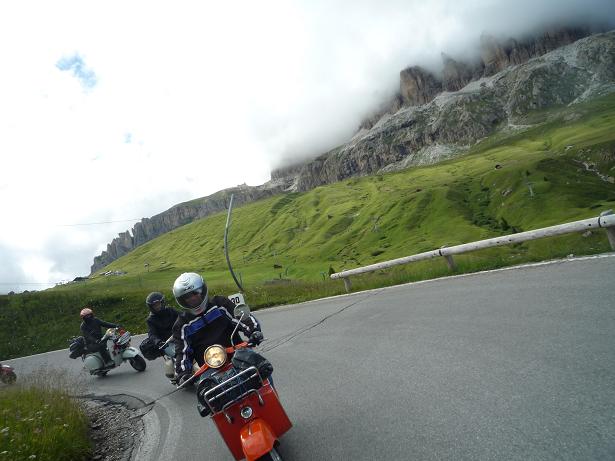 Comunque ragazzi a parte il primo giorno che per metà strada abbiamo preso acqua , il tour è stato grande , ci siamo divertiti e le vespe hanno tunuto botta su è giù per i passi delle dolomiti. Hanno sofferto un po l'altitudine e l'umidità , ma problemi zero. Ecco qualche foto: