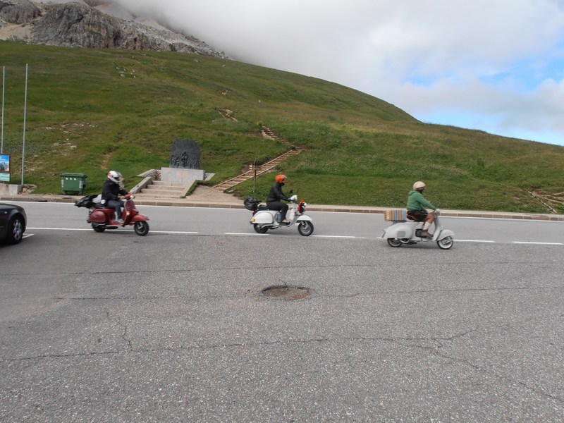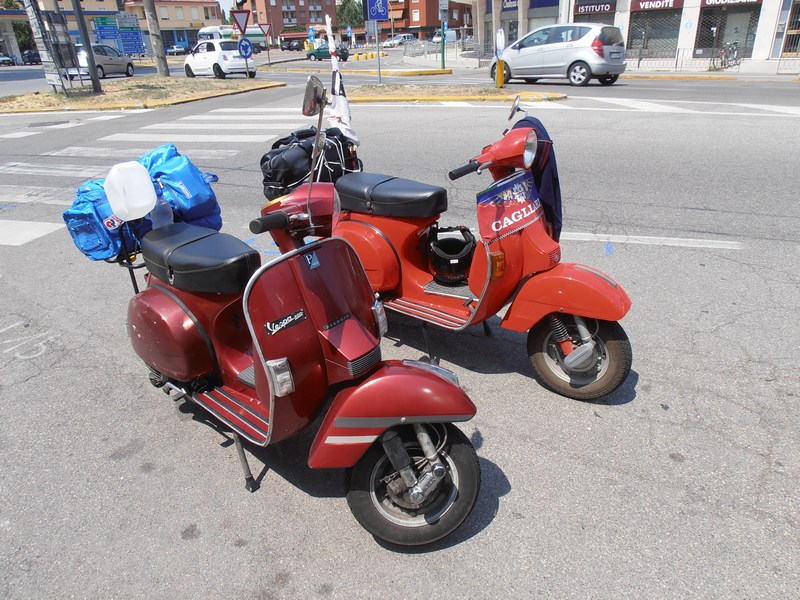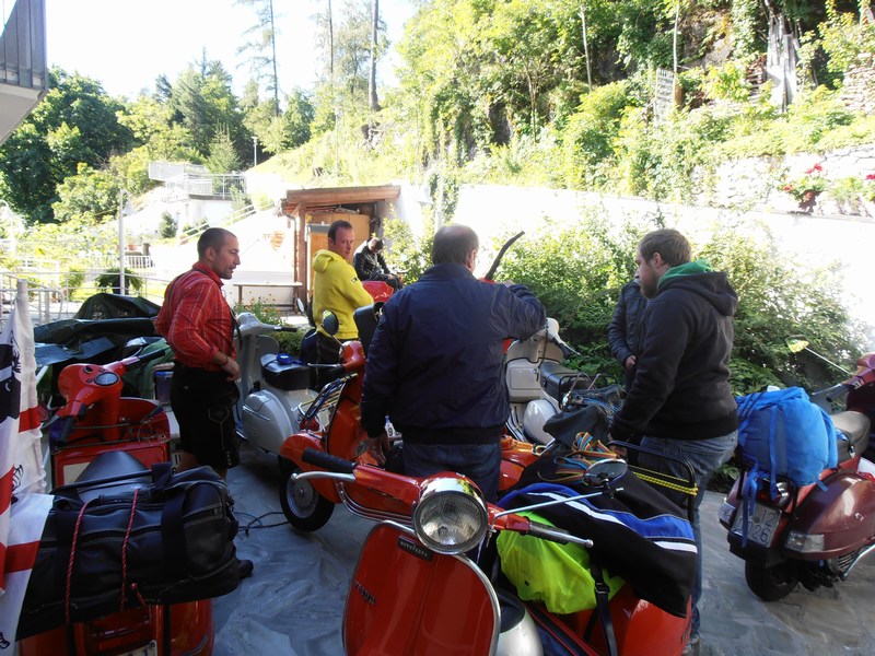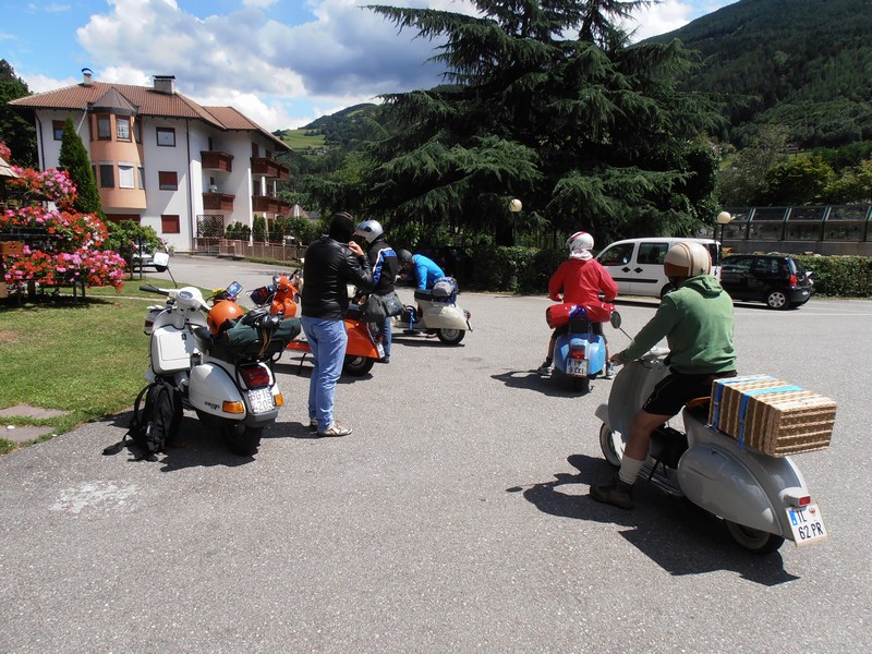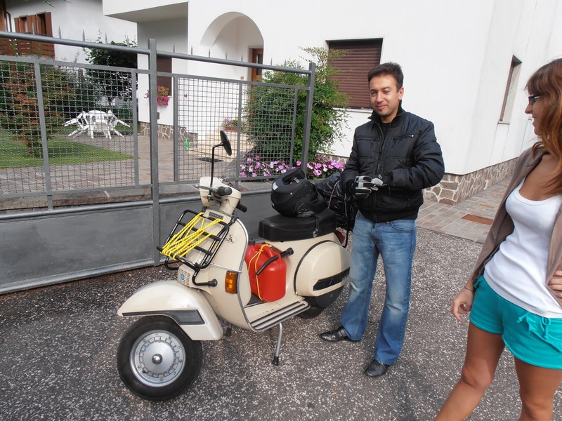 Ed eccomi qua, dopo quasi 1200km in vespa, stanco morto ma felice a raccontare anche io questi fantastici 3 giorni insieme a dei grandi amici come voi. Mi sono divertito tantissimo (vigili e carabinieri a parte ), soprattutto con Remo e i suoi amici pazzoidi . E poi Lorenzo con la sua bontà infinita, Fede con le sue fantastiche risate e un sorriso sempre stampato sulle labbra, Walter con la sua generosità e la sua saggezza, Salvo che insieme a Remo svuota la cantina e invita a bere il mio mirto pure la cameriera frustrata teteska e Stefano che con la sua esperienza vespistica appassiona sempre tutti. Insomma è stato un giro strepitoso, non credevo che la montagna fosse così bella. Alla fine il maltempo non ci ha fermati ed è uscito un sole più bello di quello della Sardegna. Lorenzo mi raccomando non avere fretta e guarisci presto