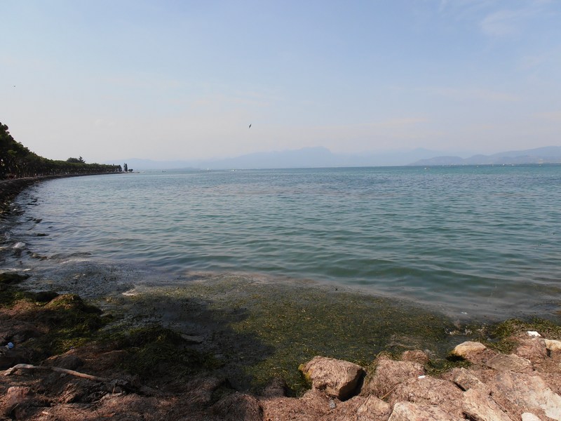 Dopo esserci riempiti la pancia ripartiamo e dopo pochi chilometri (che pensavamo fossero molti di più) arriviamo al bellissimo lago di Garda (il Poetto mi piace di più però )