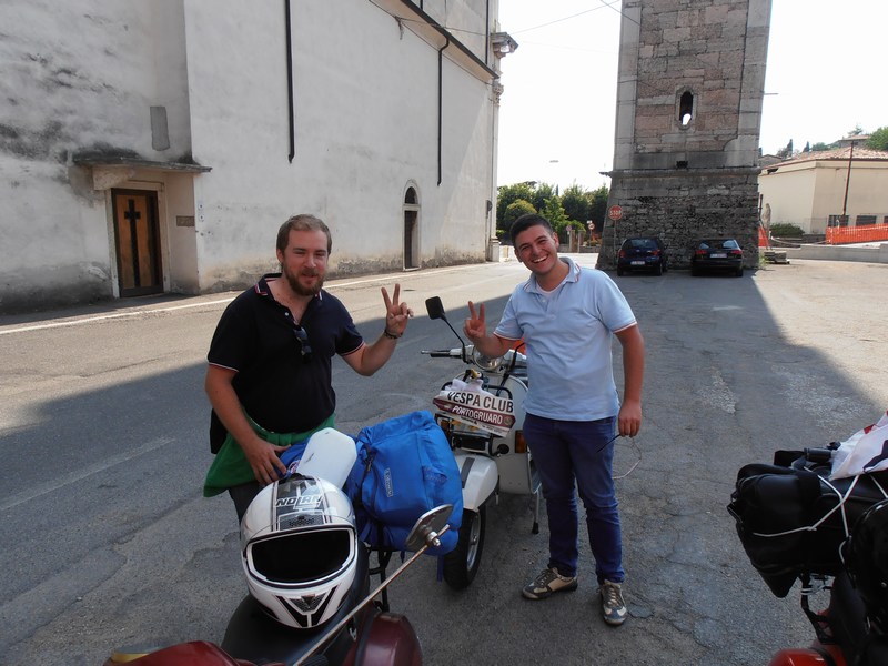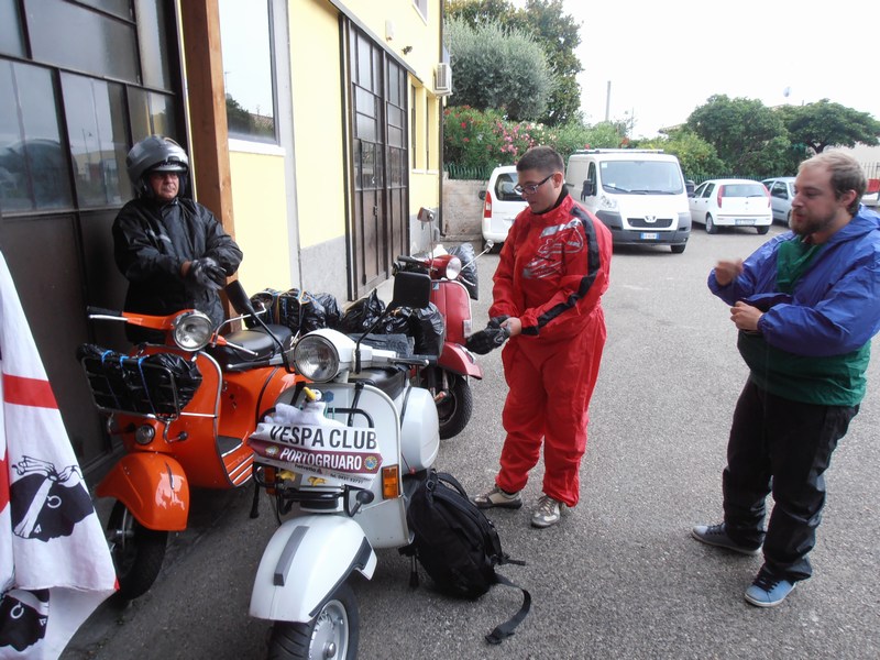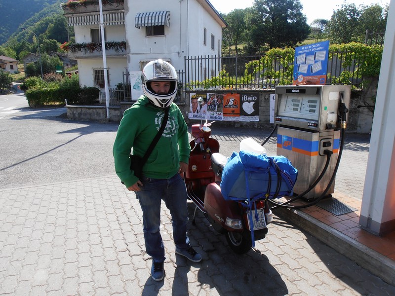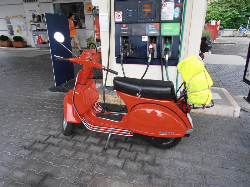 E ad un rifornitore incontriamo Salvo in sella alla sua particolarissima vespa spagnola