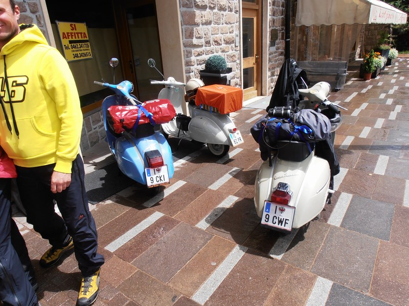 Dopo più di 100km sotto la pioggia arriviamo a Cavalese completamente fradici dove incontriamo quei pazzi di Remo e i suoi amici (Matteo e )