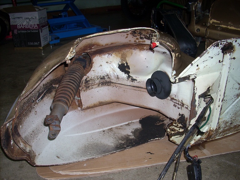 ho un altra domanda spero che qualcuno dica la sua...... la mia vespa era sicuramente azzurro chiaro 400, con fondo nocciola, a parte sulla scheda trovata in questo forum http://www.vespaforever.net/forum/topic.asp?TOPIC_ID=4262 da vespa tecnica a altri siti o informazioni trovate quà e la in nessuno da per questa versione l'azzurro chiaro 400, ma lo da dal 66 in poi, la forcella era sicuramente verniciata di azzurro mentre il mozzo e i cerchi che quasi sicuramente sono gli originali, tutti e tre hanno ancora stampigliato il logo rettangolare erano grigi, il copriventola che era con il motore che ho acquistato sucessivamente era verde..... qualcuno a la moto del 65 azzurro chiaro?? ho messo delle foto e si vede che la vespa è stata riverniciata sempre senza sessere smontata.