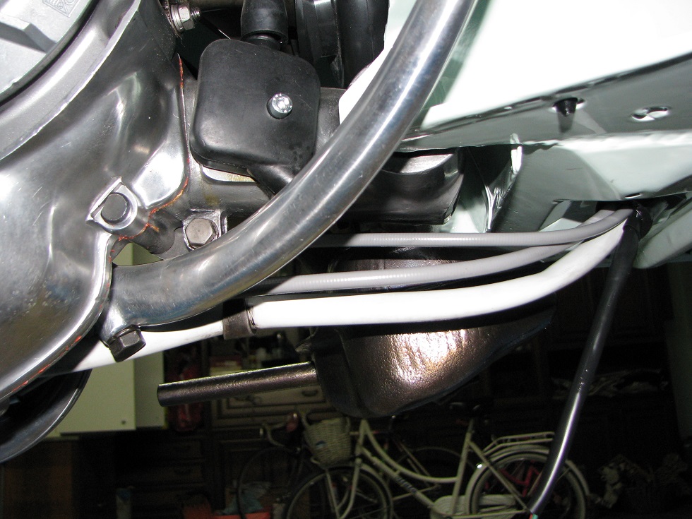 il pezzo indicato con la freccia rossa serve a indurire un po' l'accelleratore in aprtura mentre lo lascia ritornare liberamente, nel manubrio della vespa 50L 1967 che ho fatto c'era, il questa del 65 non c'č, sarā andato perso negli anni o proprio inizialmente non era previsto, qualcuno sā rispondermi?