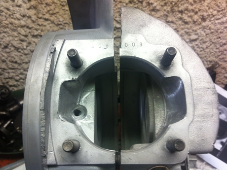 0.4 mm e' impossibile, l'ho preso come un refuso di poeta e sono sceso di 5 mm, con la lima quadra infilata nel condotto di ammissione, manico dal lato carburatore, ho limato solo verso il basso, senza toccare le pareti laterali, poi ho passato carta abrasiva fine |