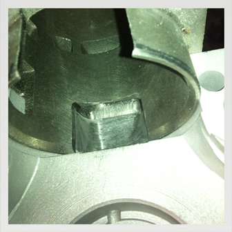 Questo perchè, se provate a immaginare il flusso della miscela che si indirizza verso i trv, in quel punto va ad infrangersi contro quel piccolo "muro" perpendicolare. Si tratta quindi di realizzare una sorta di "invito" che indirizzi la miscela verso i travasi, rimuovendo materiale nei punti che ho indicato in rosso: