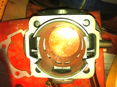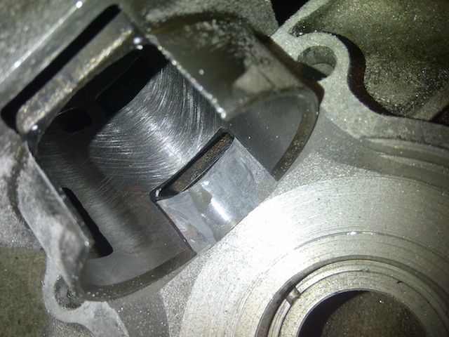 eh eh sapevo non essere un lavoro perfetto ma avevo la paura di bucare il carter o esagerare!!! sono cmq piu' larghi dei travasi originali e si accoppiano abbastanza bene con i passaggi del cilindro