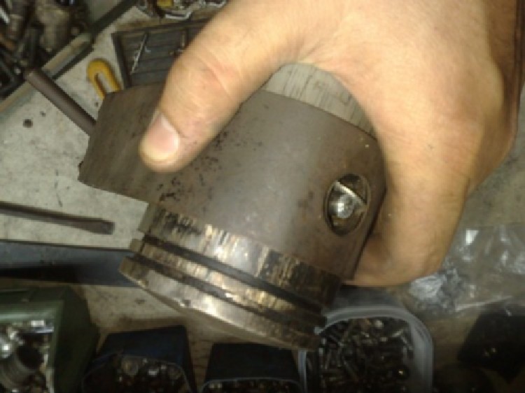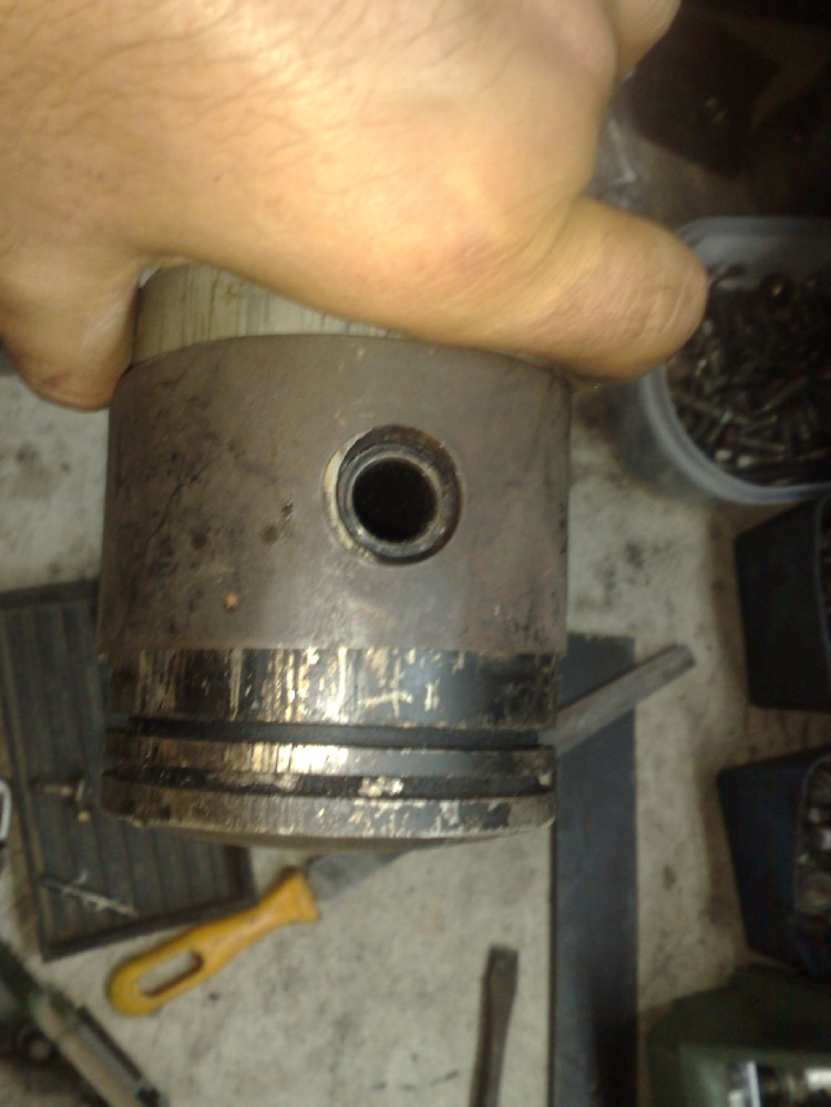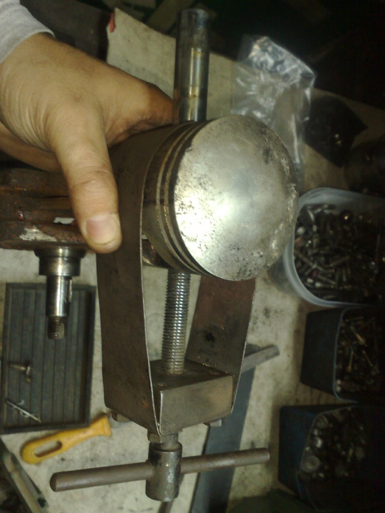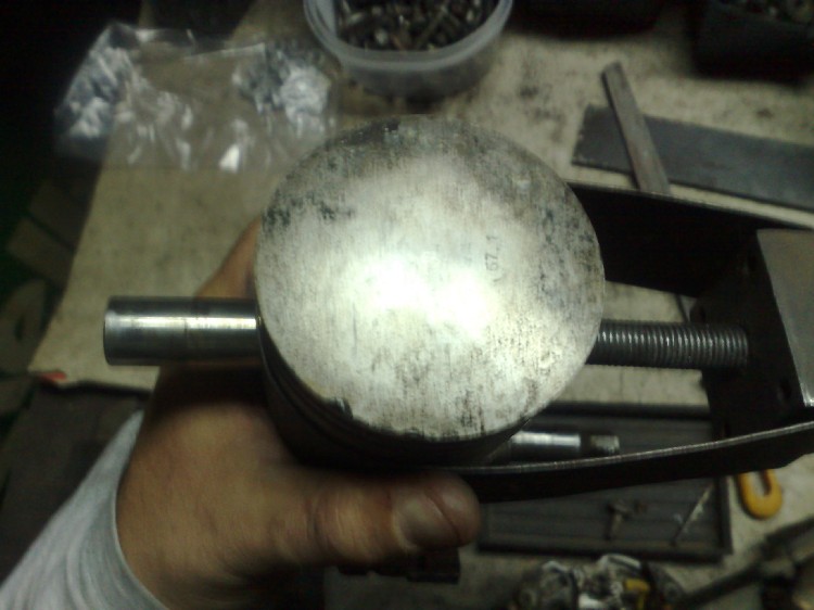 se avete fatto caso, per non danneggiare il pistone, ho messo un'o-ring di gomma e poi ho avvitato il bullone al tassello di metallo (M8) messo al contrario e...
