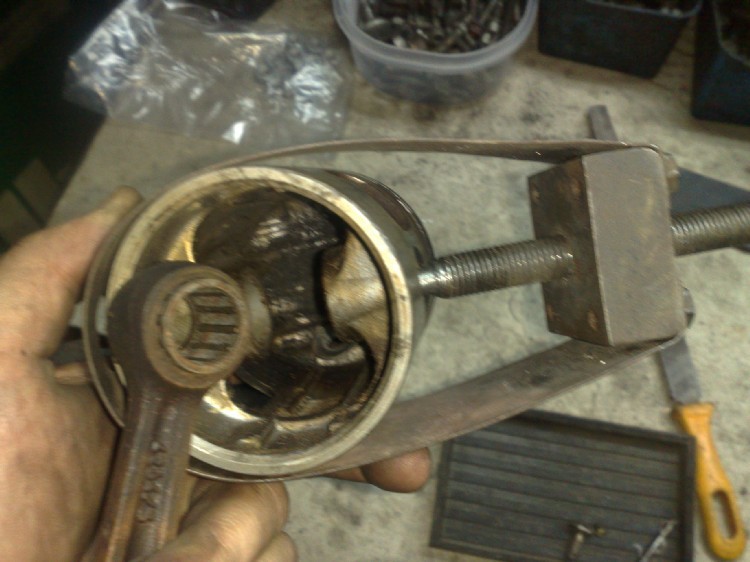 Sperando di far cosa gradita, ho preparato per il forum un metodo per lo smontaggio dello spinotto pistone senza usare in alcun modo martelli, cacciapine o quant'altro che possa causare danni alle parti interessate.. con questo metodo si riesce agevolmente a smontare e montare lo spinotto anche con il motore montato sulla carrozzeria, in tal caso ci serviremo di una pinza a becchi curvi