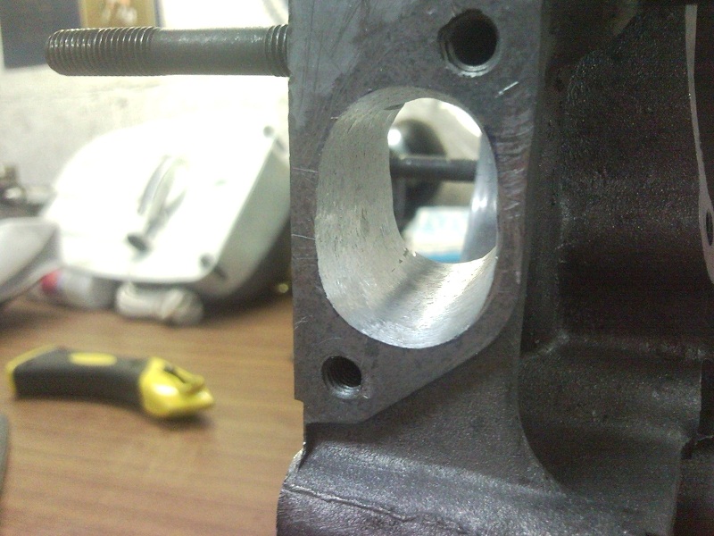 | Ciao Nico, i lavori mi sembrano egregi, forse potresti abbassare ulteriormente il buco della ex-valvola se c'è abbastanza spessore di alluminio, dalla foto non si capisce bene. Io prenderei uno spalle piene corsa 53 nuovo. Non so se con l'aumento di corsa ed una basetta già arrivi alle fasi desiderate, non credo comunque, sarebbe da provare. In corsa 53 ti serve uno spessore da 1mm, ma prendine anche uno da 1.5 ed uno da 2, magari arrivi alle fasi di cui parlavo e lo spessore che eccede rispetto al millimetro necessario lo togli dalla testa. Dovresti anche misurare lo squish. Basettando sotto al cilindro, in corsa 43, dovresti abbassare lo scarico di 1mm + i mm di spessore che usi, per riportare il pistone in pari con lo scarico al pmi. |