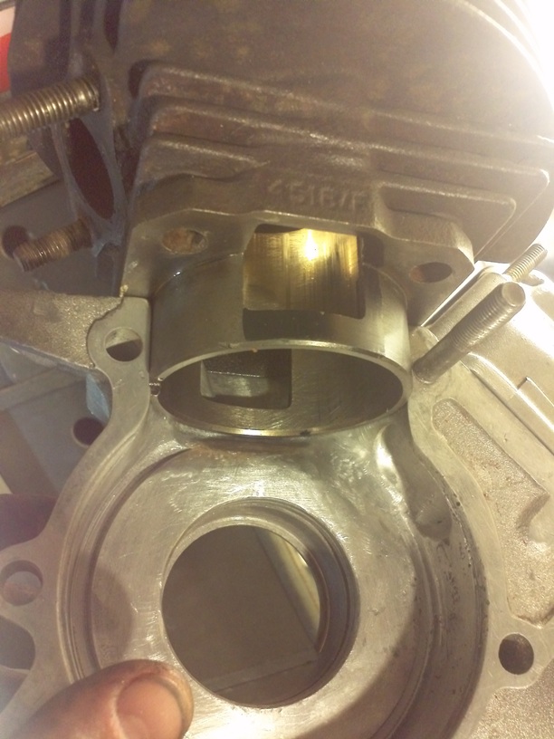i carter che hai sono stranamente bassi,s embrano spianati... ma forse è solo una impressione,... prima di infilare la testata, metti foto del pistone al PM superiore nel cilindro. |