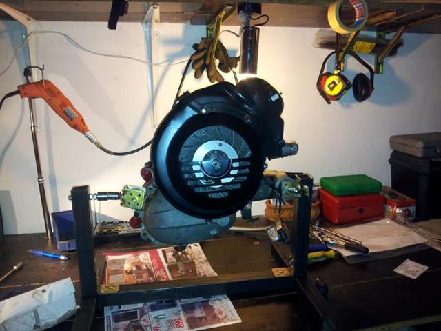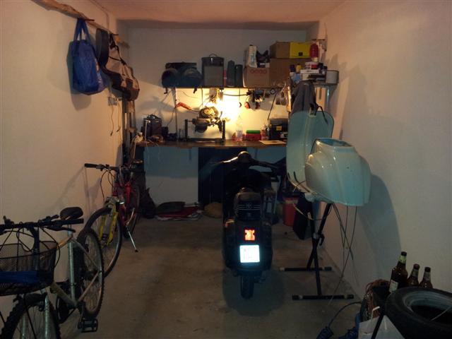 Grazie, in questi mese ho allestito il mio garage in modo da poterci lavorare e con un amico abbiamo costruito il cavalletto per lavorare sul motore. Come vedete le birre non mancano mai quindi se qualcuno nei dintorni volesse fare un salto per una sana conversazione "vespistica" e bere un paio di Rosse non ha che da chiedere...
