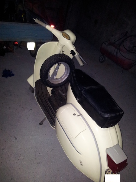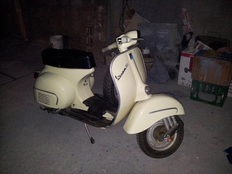 Eccomi qua, come ha già detto l'amico Riccardo, la vespa se si prende è per lasciarla così. Vale a dire che la vernice non dovrà subire nessun intervento di nessun tipo. Altrimenti si rifà come Dio comanda. Ovviamente se Riccardo la prenderà la metterò in condizioni di circolare, tipo un cambio di tubo benzina, una controllata allo statore, al carburatore, alla forcella, insomma un controllo di routine.