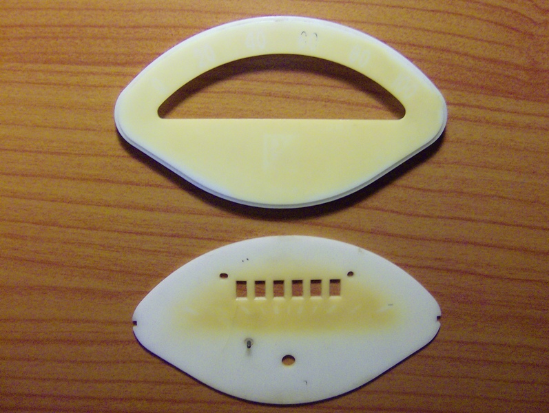Obo, ne esistono diversi modelli, la scritta "Veglia" sui più vecchi era più in basso, su quelli successivi più in alto... inoltre i fondi nuovi, seppur ben fatti, non sono traslucidi come quelli originali, quindi la luce della lampada che illumina il tachimetro in quel caso non serve a nulla... |