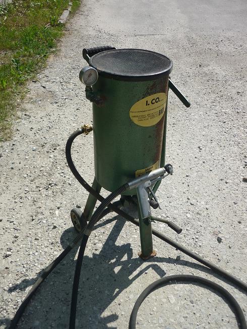 È una vecchia sabbiatrice acquistata da un vecchio anziano che faceva lavori di restauro mobili. La marca non la ricordo adesso , ha un serbatoio della portata di circa 20 litri , ha un range di utilizzo di 1 - 8 bar. Dovrebbe esserci una foto da qualche parte nel forum... Se la trovo posto il link.