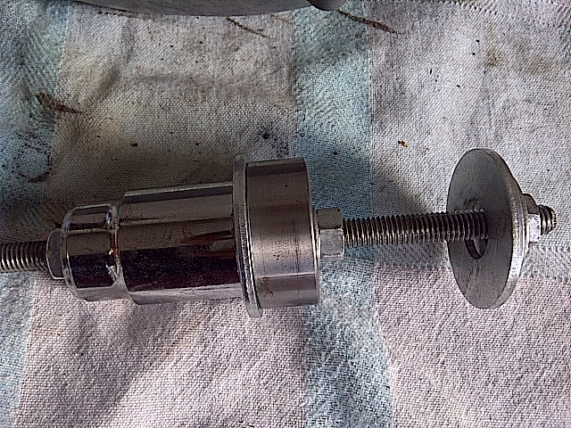 composto da perno filettato, rondella, bussola del 22, rondellona, cuscinetto vecchio con rondella a misura incastrata dentro, poi ovviamente ci va il cuscinetto nuovo semi inserito, il perno che è passante si tira il cuscinetto che ha un'altra rondellona con dado dall'altra parte.