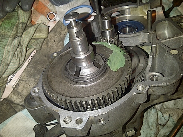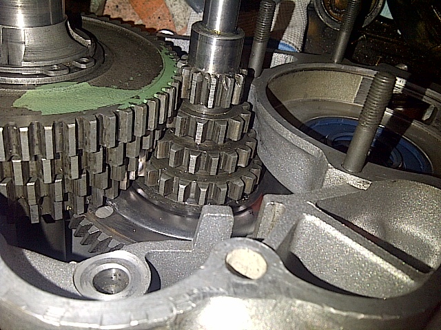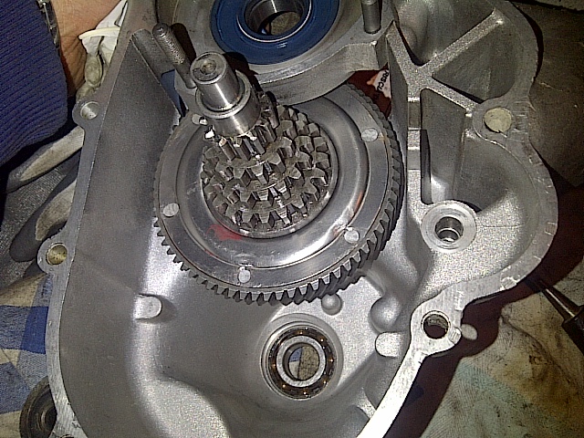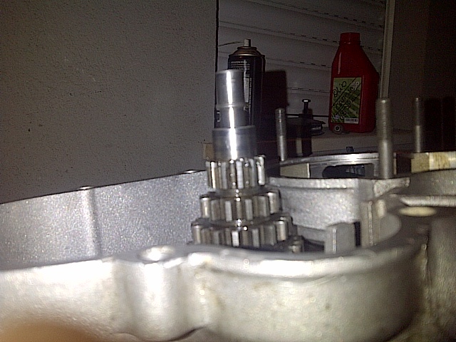 l albero del cambio tiralo senza gli ingranaggi sopra.... ce li monti dopo........