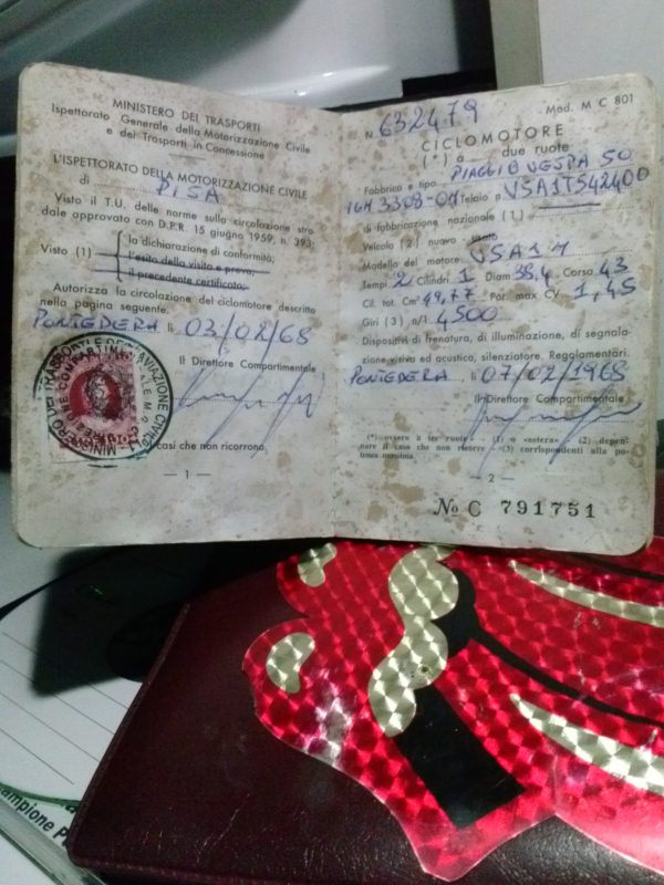 | Grazie per il topic, comunque ho controllato e la vespa è del 68, ho messo anche la foto del libretto!! |