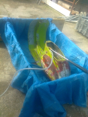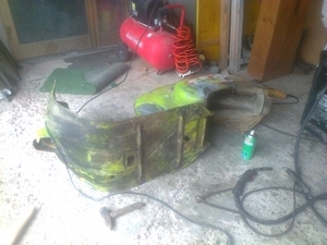 ecco i lavori di ieri, raddrizzatura e saldatura pedana
