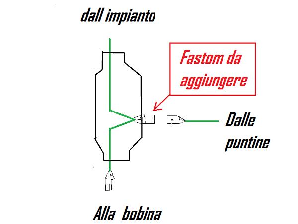 basta un solo fastom all altezza della scatola bt dove collegare il filo proveniente dallo statore e l altro capo metterlo alla bobina