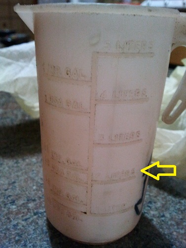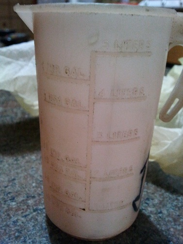 Se il misurino non è graduato allora... non è un misurino ! Se hai comunque dei dubbi tali ti conviene comprarti una tanica e fartela con calma a casa...