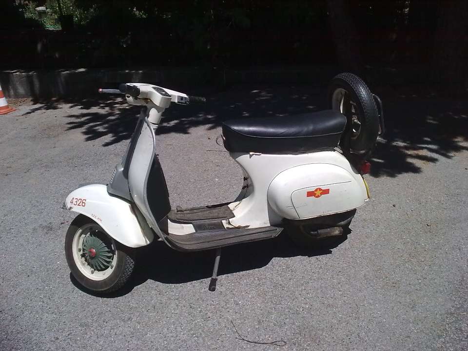 Più che ad un Chengdu J-7 avrebbe dovuto somigliare ad un MiG-21PF dell'aviazione nordvietnamita (per questo la volevo grigia metallizzata). Quegli anni erano infestati da paninari fanatici di Rambo e facevo il possibile per distinguermi. Il bauletto che ho comprato era previsto che si montasse forando lo scudo. Non mi sembrava uno scandalo e, a dire il vero, non me lo sembra neppure oggi. Capisco che per l'iscrizione al registro le Vespe debbano essere come uscite dalla fabbrica, onde evitare gli eccessi di Vespa Horror. Ma la Vespa è fatta apposta per essere personalizzata e penso che meriterebbe un registro (di "serie B" o qualcosa di simile) che tenga conto di questo e tolleri un certo livello di personalizzazione funzionale ed estetica, purché eseguita a regola d'arte. |