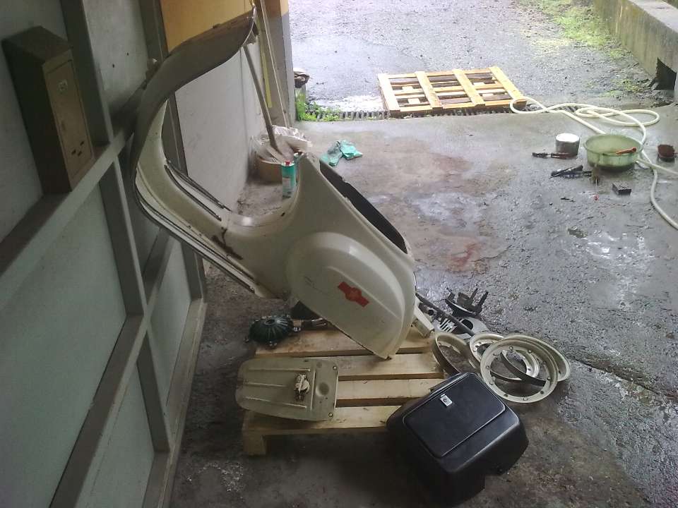 Ciao a tutti. Sono nuovo (del forum, non in senso lato purtroppo…) e vorrei restaurare la mia 50 Special del 1982. Allego foto prima e dopo lo smontaggio, in attesa del preventivo di un carrozziere per riparazione ammaccature e verniciatura. Qualche esperto sa dirmi se ritiene che questa Vespa possa aspirare al Registro Storico FMI, tenendo conto che non intendo rinunciare a bauletto sullo scudo, portapacchi, sella lunga e luce stop (allo studio), tutti accessori che pur non stravolgendo il mezzo lo rendono “vivo” e fruibile? In particolare vorrei sapere se il restauro a regola d’arte prevede solo l’uso dei colori originali, che mi pare fossero i nitro Max Meyer serie Bilux ormai in via di estinzione, o ammette l’uso di colori moderni, magari della stessa marca, purché della tonalità prevista. A questo proposito mi piacerebbe cambiare il colore originale Biancospino nel Chiaro di Luna Metallizzato. Ma dalle nebbie della mia giovinezza affiora il ricordo che quando la comprai di questo colore non ne facevano più, se è davvero così dal punto di vista della correttezza storica sarebbe anacronistico. Insomma, avrete capito che sono combattuto fra la voglia di restauro a regola d’arte (che mi pare una fatica di Sisifo) e uno più “user friendly”, magari indulgendo a quel malsano gusto per la personalizzazione che negli anni non mi ha mai abbandonato . Cosa mi consigliate?