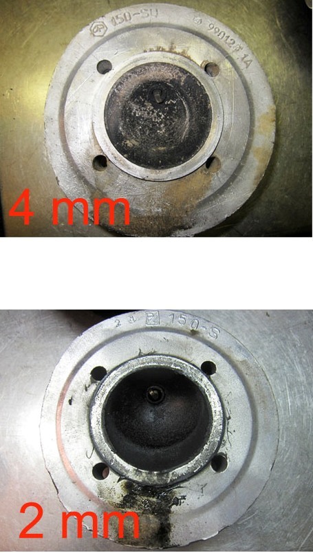 per la testa una volta alzato tieniti su uno squish da 2MM, MENO SEI COMPRESSO, infatti e più la vespa sarà dolce in erogazione e fluida, averci squisch troppo spinti diu solito crea solo casini, se la 150 la vuoi fluida e morbida non serve la compressione ma bensì la gisuta compressione!! Quindi se alzi sotto diciamo di 0.7 mm abbassa la testata della 150 prima serie che ha una calotta menbo compressa di 1mm, guadagni 0,3mm di abbassamento ma hai una cupola ben generosa che non ti comprime troppo... se comprimi ed hai anche una cupola più piccola rischi che batte in testa, nel egrgo non significa che il pistone sbatte, ma farà un rumore strano ed avrai la pedivella ed il motore ruvidini... certo cammina ed ha più spinta, a discapito però del povero albero che faticherà di più... è sempre un compromesso... dipende da cosa cerchi... se vuoi il materasso serve poca compressione è ovvio. |