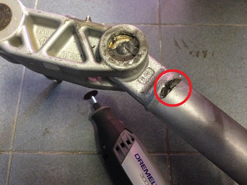 Ormai mi rispondo da solo.......... almeno spero serva a qualcun'altro che ci passa. Allego una foto di come ho tolto i fermi dal braccio oscillante. In pratica li ho tagliati a metà con un dremel, in questo modo viene alleggerita la forza che essi provocano radialmente. Poi per sfilare perno e relativi astucci con rulli, sono andato SOTTO PRESSA !!!! si avete letto bene, senza pressa non si toglie.....eh voglia martellare ! Ora dopo aver acquistato il pezzo nuovo procedo al rimontaggio sempre sotto pressa, facendo attenzione al verso di inserimento.