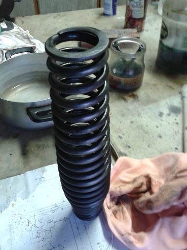 il contenitore per immergervi la molla può essere un flacone usato di lysoform tagliato all'estremità superiore (e capovolgi la molla di tanto in tanto per trattarla tutta)